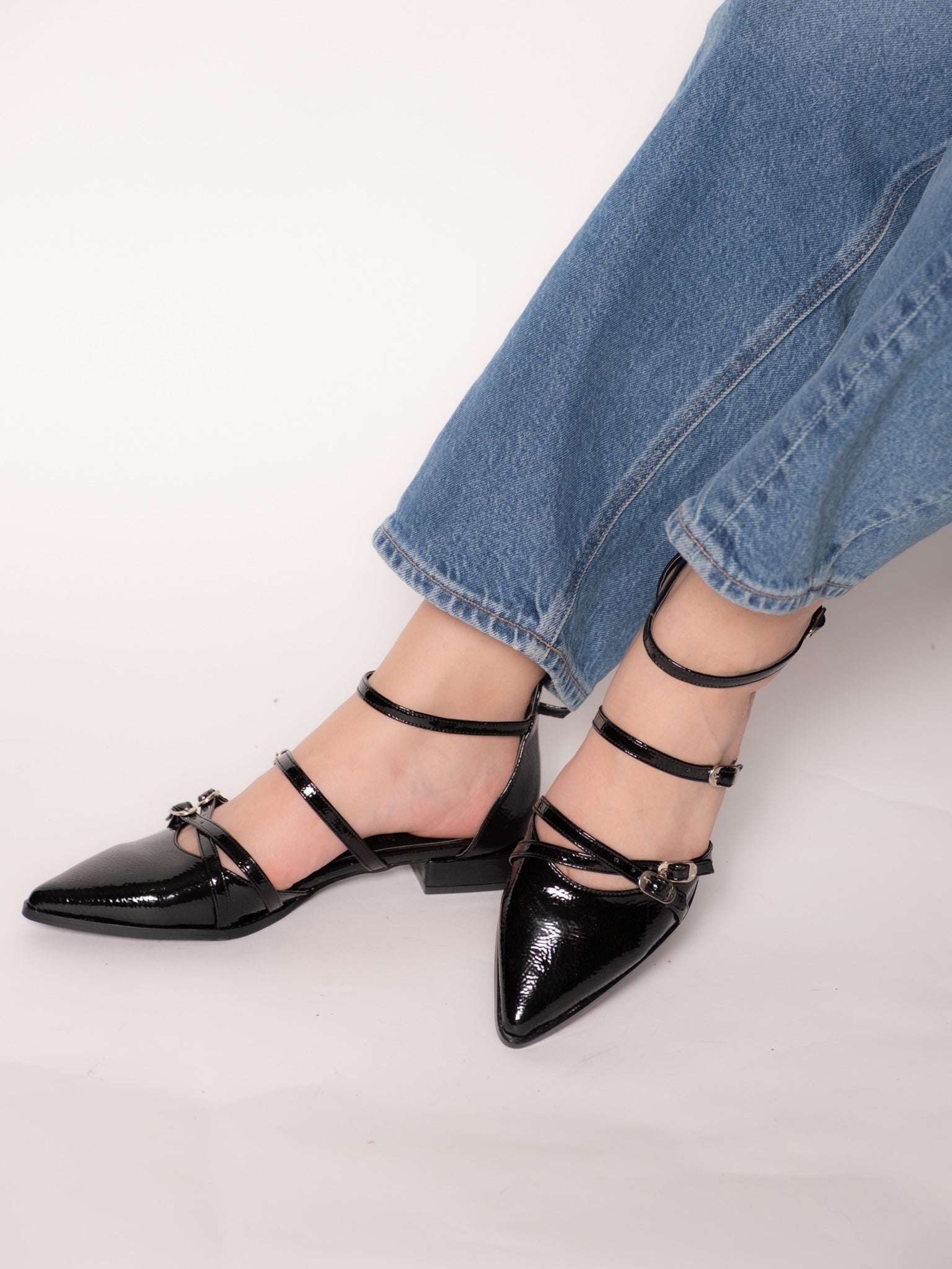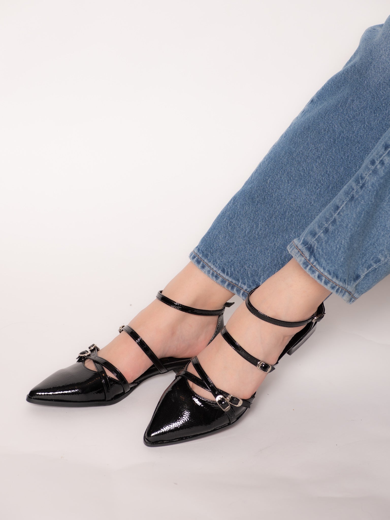 Emilia - Zapatos Negros con una silueta angulosa y detalles de Hebillas